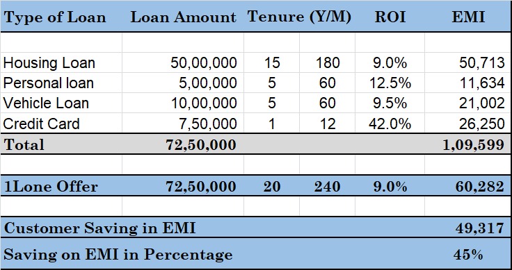 Illustration for Saving in EMI upto 45% on EMI by Debt Consolidation